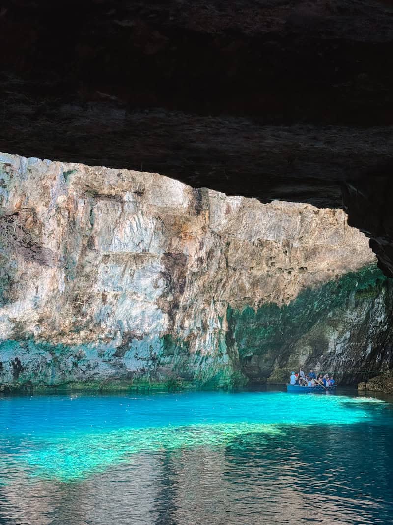 One of my son’s favourite experiences was visiting the mesmerising Melissani Cave just outside Sami. The cave features an underground lake that gets lit up an electric blue colour by sunlight that streams through a hole in the collapsed roof.
